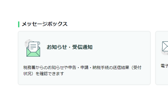 ログイン後、次のメッセージボックスにて納税の通知を確認する。